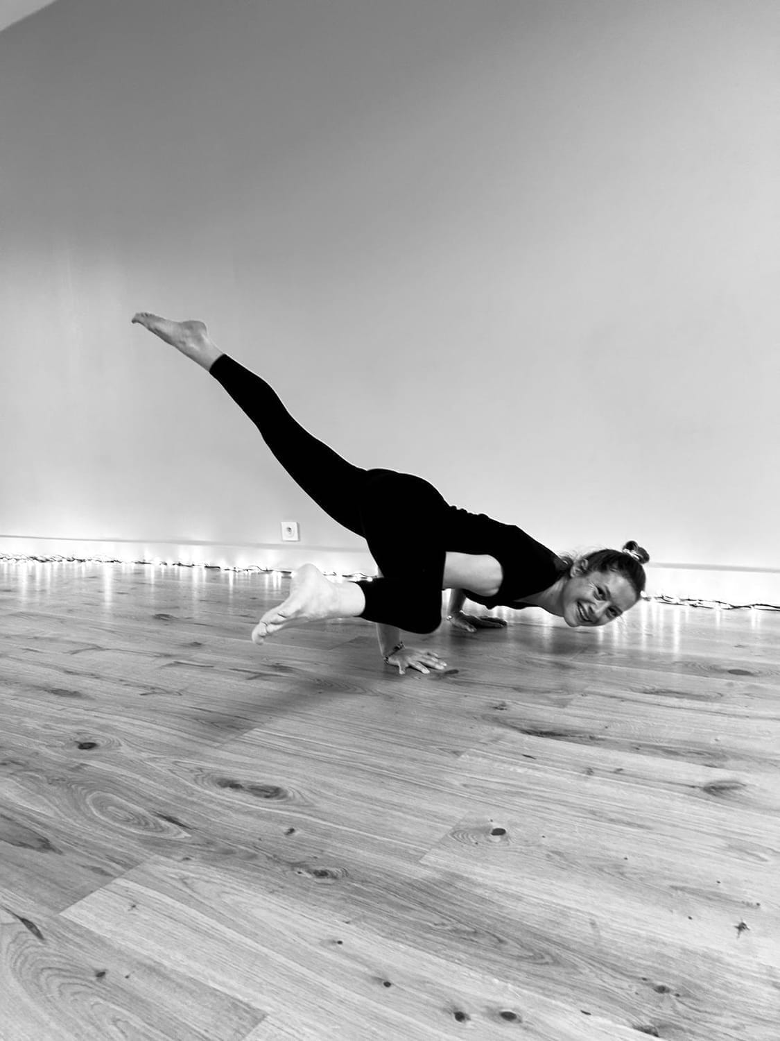 Adho Mukha Vrksasana (équilibre sur les mains) ainsi que les tuks et straddles.